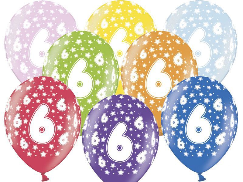BALON 6th BIRTHDAY MIX 30cm 1szt