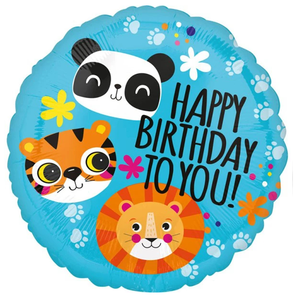 BALON ANAGRAM HAPPY BIRTHDAY TO YOU ZWIERZĄTKA BŁĘKITNY 17'' 43cm