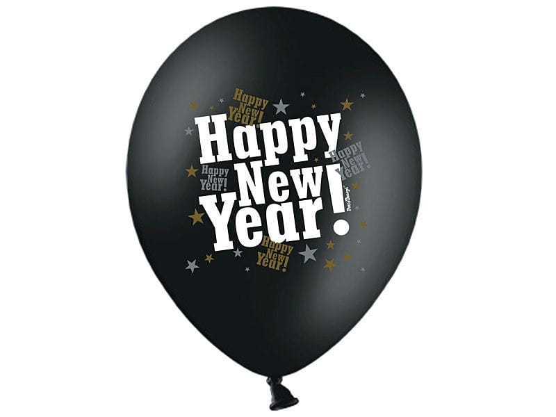 BALON CZARNY HAPPY NEW YEAR BIAŁY 30cm 1szt