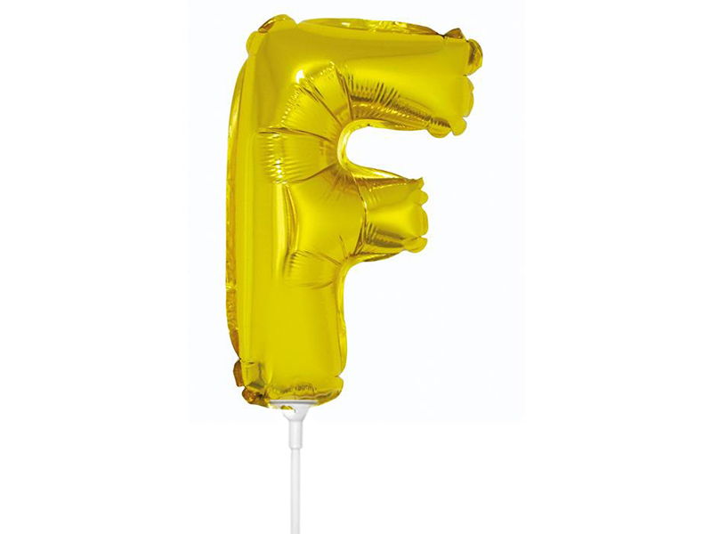 BALON LITERA F ZŁOTY 14'' 36cm + PATYK