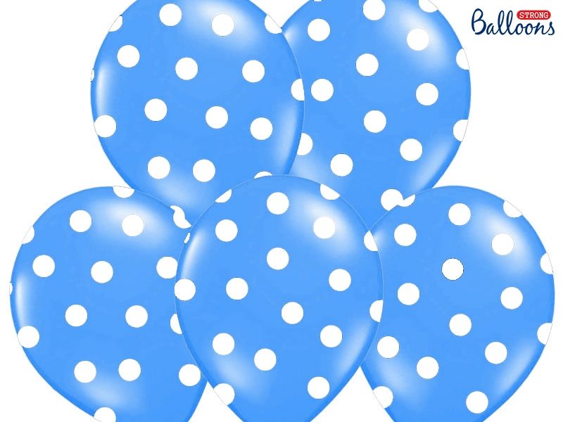Balony Strong Kropki w kolorze Pastel Cornflower Blue, z białym, pięciostronnym nadrukiem.