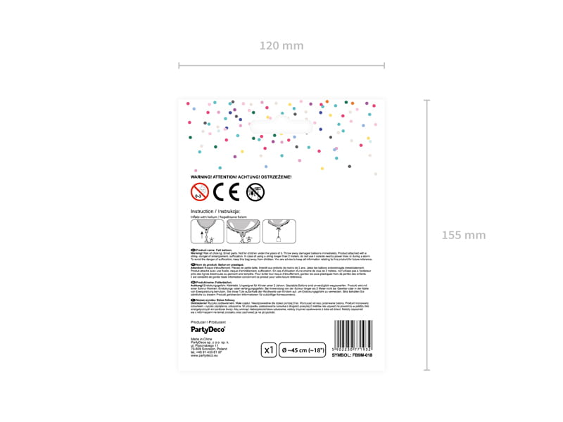 BALON PARTY DECO SERCE SREBRNY 18'' 45cm
