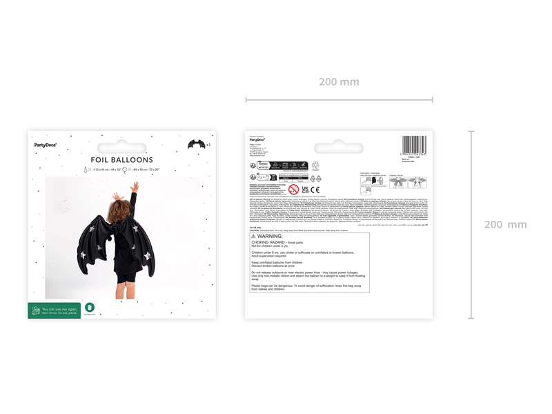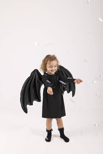 Oto rewolucyjny, bo wielofunkcyjny balonik foliowy w kształcie skrzydeł nietoperza! Dlaczego wielofunkcyjny? Po pierwsze, możesz go użyć do halloweenowej dekoracji! Dzięki ozdobnym holograficznym gwiazdkom skrzydełka nabierają uroczego charakteru, dzięki świetnie będą pasować na dziecięce przyjęcia! A po drugie: możesz go użyć jako dodatku do stroju! Jak to możliwe? Balon posiada sznurki do przywiązania na plecach, dzięki czemu skrzydełka stanowią świetny dodatek do kostiumu nietoperza lub wampira!