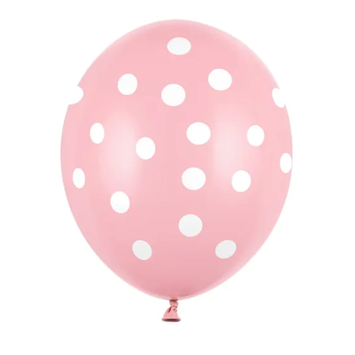 Różowy balon lateksowy z serii Strong ozdobiony nadrukiem białych groszków sprawdzi się doskonale jako dekoracja na urodziny, babyshower i wiele innych okazji! W naszej ofercie znajdziesz również paczki balonów z groszkami pakowane po 5, 10, 25, 50 i 100 sztuk!