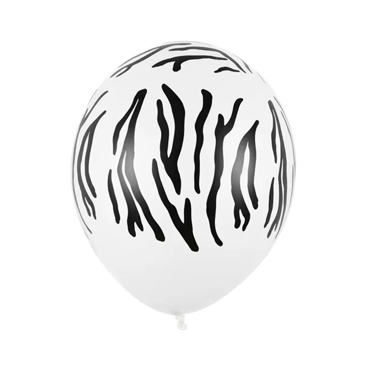 Biały balon lateksowy z serii Strong ozdobiony nadrukiem czarnych pasków zebry sprawdzi się doskonale jako dekoracja na urodziny i i wiele innych okazji! W naszej ofercie znajdziesz również paczki balonów z paskami zebry pakowane po 5, 10, 25, 50 i 100 sztuk!