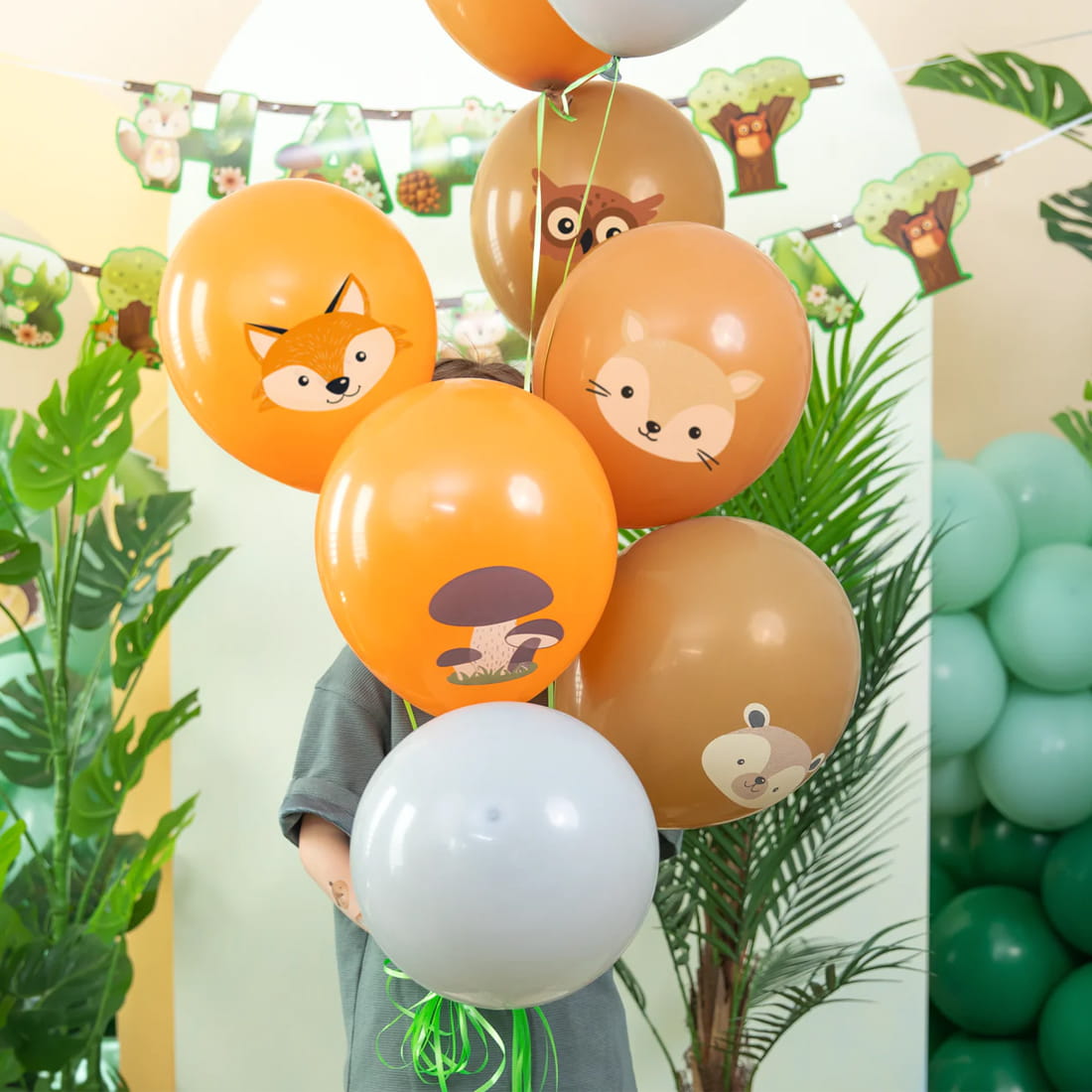 Planujesz przyjęcie urodzinowe dla swojego dziecka i szukasz odpowiedniego motywu dekoracji? Postaw na kolorowe balony z uśmiechniętymi zwierzątkami leśnymi! Na balonikach uwiecznione są główki liska, sarenki, misia, sowy i jeżyka, a także drzew i grzybków. Taka dekoracja z pewnością rozweseli wszystkich uczestników imprezy!