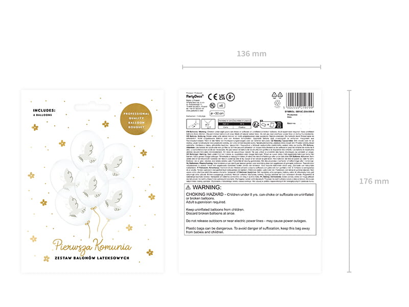 Balony Strong Gołąb, zestaw zawiera 6 balonów w kolorze Crystal Clear z kolorowym dwustronnym nadrukiem, średnica ok. 30 cm.(1 op. / 6 szt.)