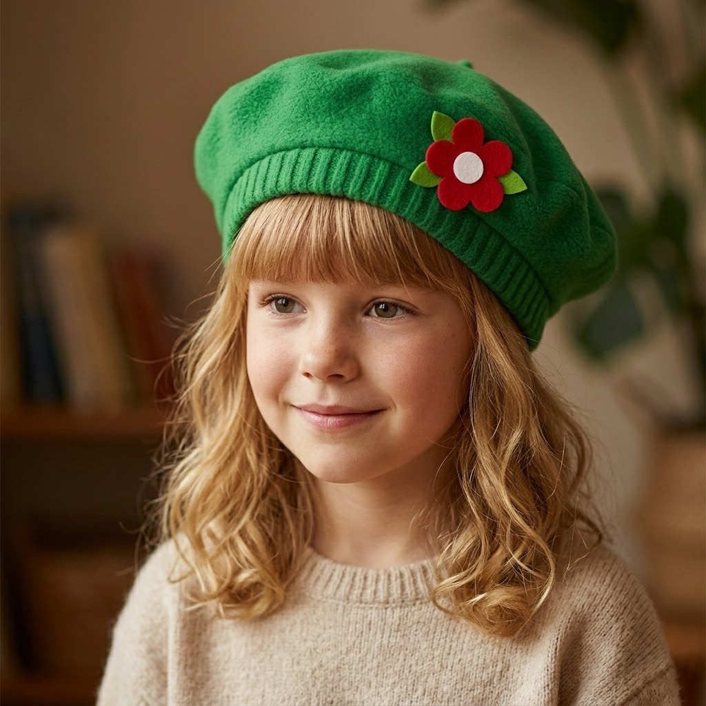 Szukasz ciepłego i uniwersalnego nakrycia głowy, które dopełni kreatywny strój Twojego dziecka? Ten zielony berecik z kwiatkiem to idealny wybór!