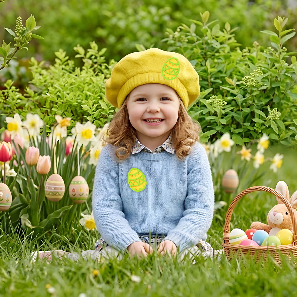 Szukasz ciepłego i uniwersalnego nakrycia głowy, które dopełni kreatywny strój Twojego dziecka? Ten żółty berecik z filcową pisanką to idealny wybór!