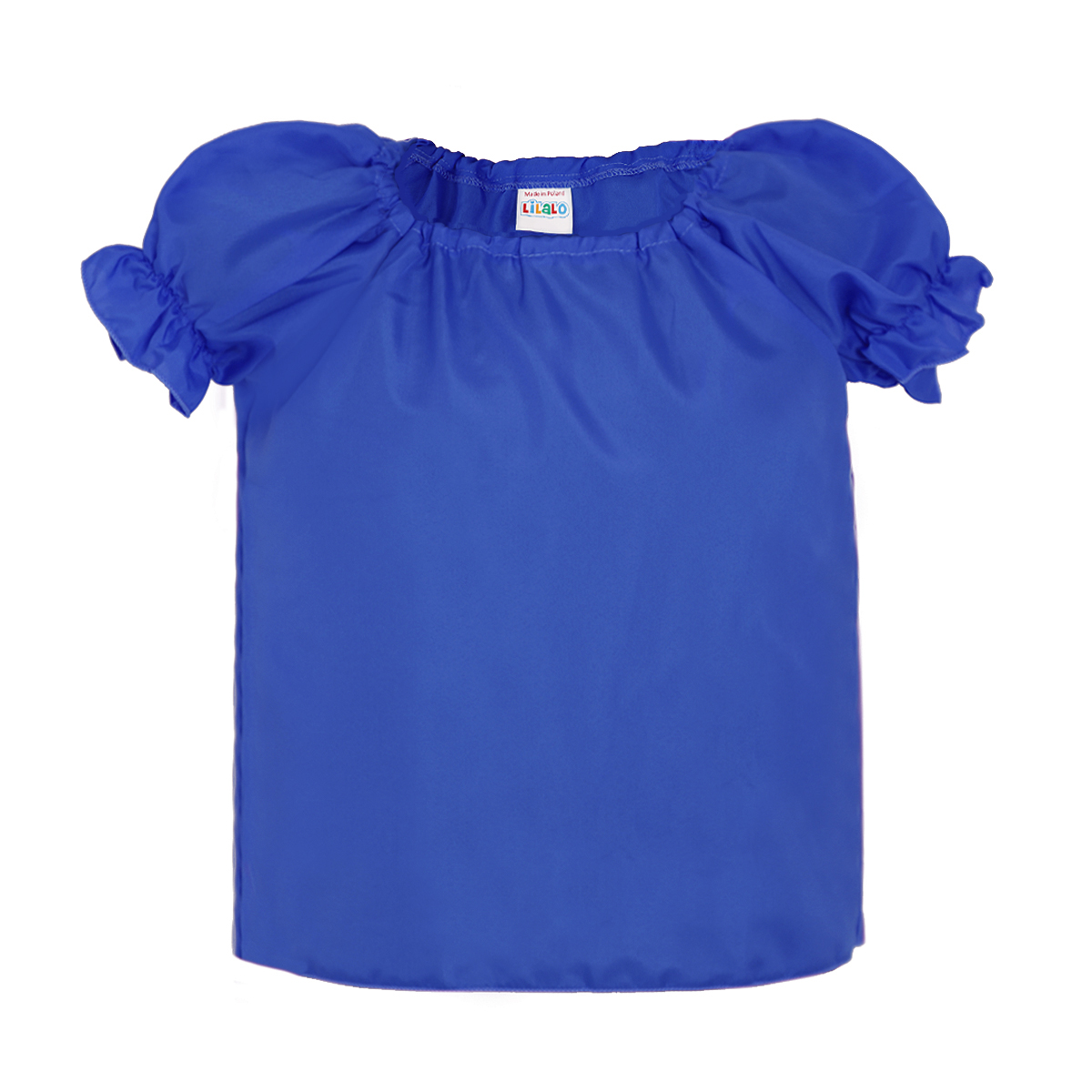Bluzeczka z krótkim rękawem w niebieskim kolorze wykonana z materiału pongee z regulowanym dekoltem oraz gumeczkami przy rękawkach sprawdzi się idealnie do wielu kostiumów!