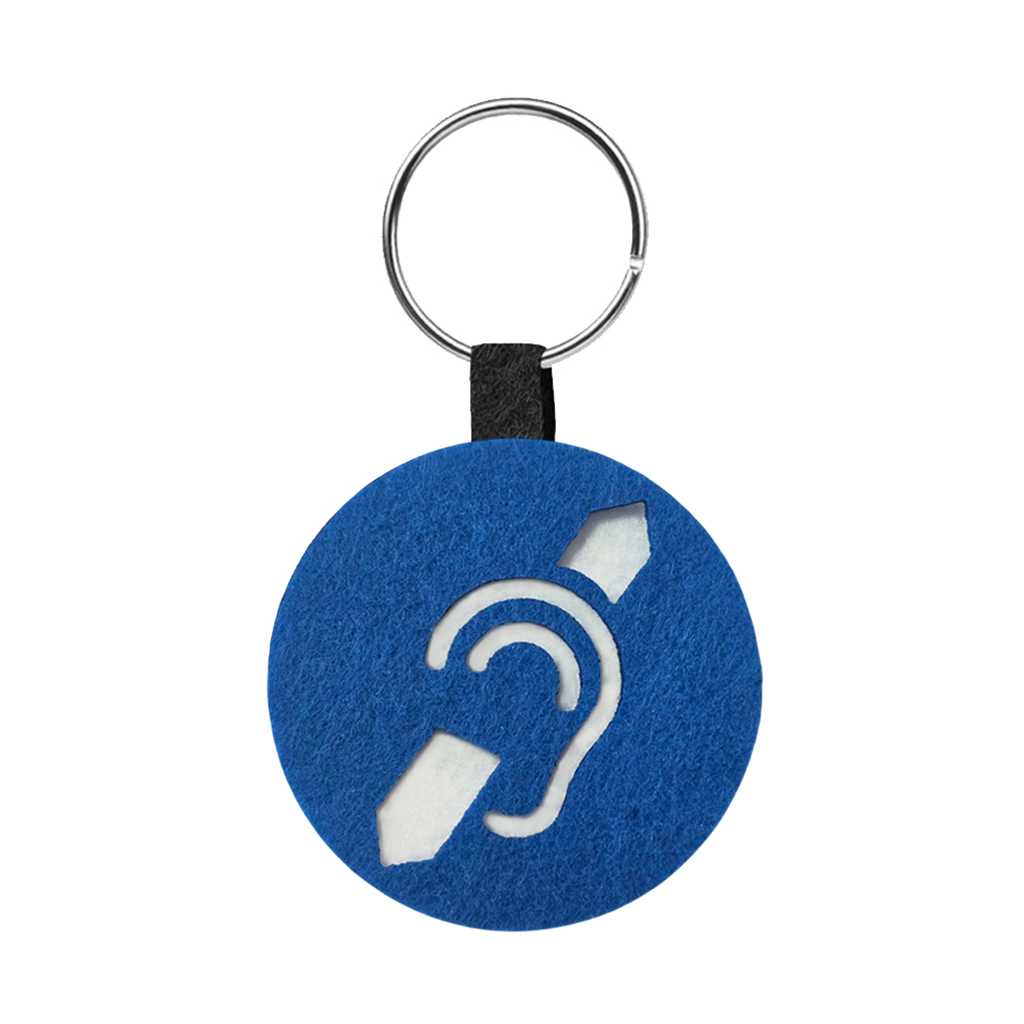 Zadbaj o lepszą komunikację i komfort w przestrzeni publicznej dzięki czytelnemu oznaczeniu. Przedstawiony breloczek to praktyczne rozwiązanie dla osób słabosłyszących oraz użytkowników aparatów słuchowych. Wykonany z dwóch warstw wytrzymałego filcu, wyróżnia się dużą sztywnością i starannym wykończeniem. Niebieski wierzch z precyzyjnie wyciętym symbolem ucha oraz biały podkład tworzą wyraźny kontrast, który zapewnia doskonałą widoczność znaku z większej odległości. Do emblematu stabilnie przyczepiony jest czarny filcowy paseczek z metalowym kółeczkiem, dzięki któremu możesz łatwo i wygodnie zawiesić ozdobę gdzie tylko zechcesz!