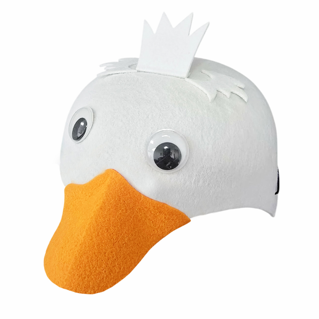 Czapka wykonana jest z wysokiej jakości filcu w białym kolorze oraz ozdobiona pomarańczowym, szerokim dziobem oraz białym, odstającym grzebieniem. Ruchome oczy dodają jej interaktywnego charakteru, sprawiając, że czapka jest nie tylko zabawna, ale i wyjątkowa!