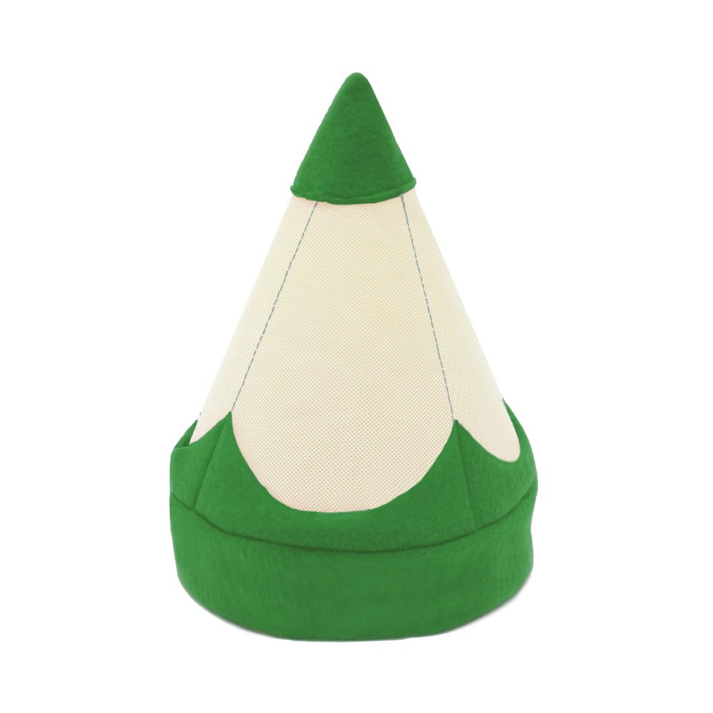 Wigofilowa, spiczasta czapeczka kredki obszyta na brzegu i na czubku polarem w kolorze ciemnej zieleni sprawdzi się doskonale jako dodatek do stroju na Dzień Kredki!