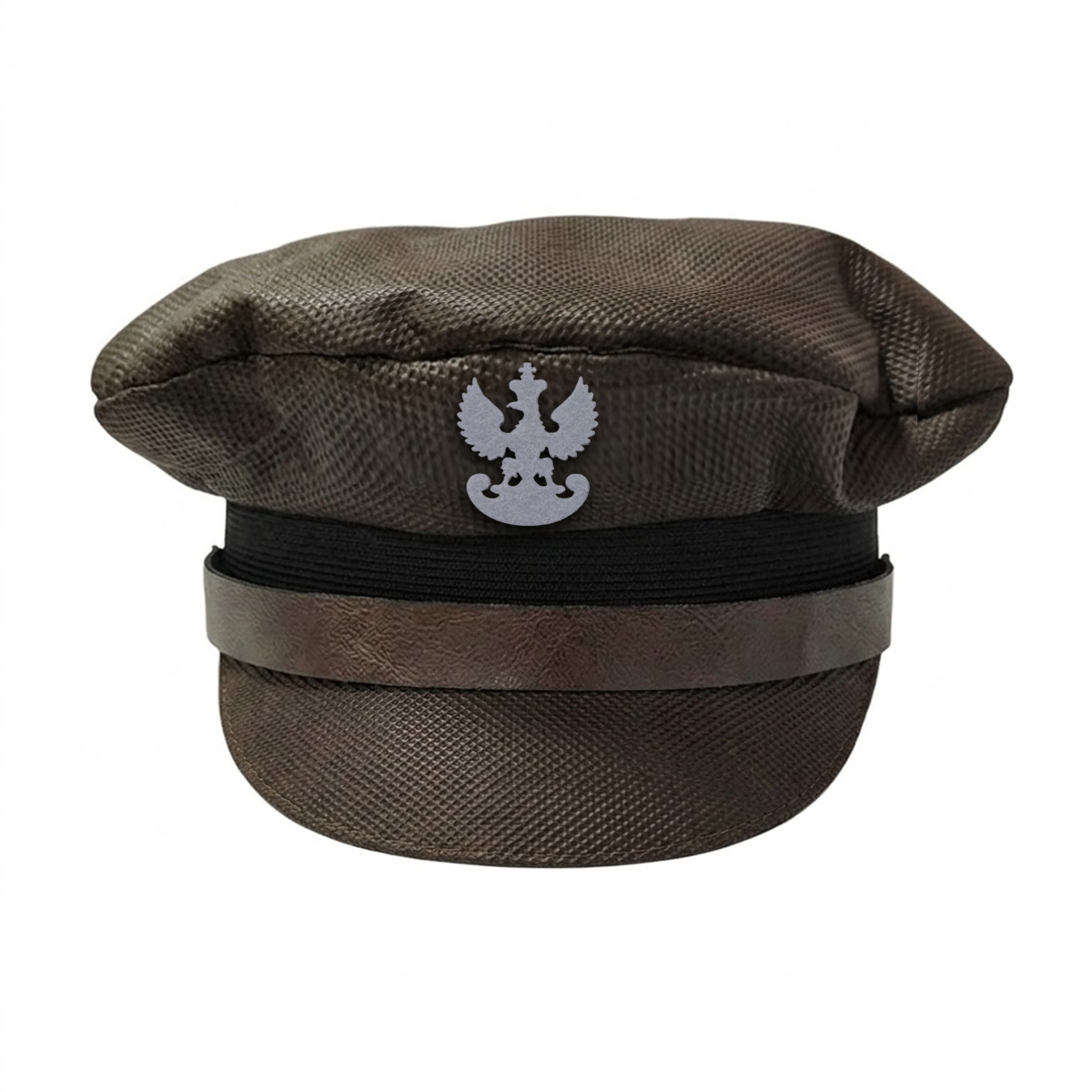 Czapeczka w uniwersalnym brązowym kolorze ma charakterystyczny, miękki krój i usztywniony daszek. Jest osadzona na czarnej, elastycznej gumce, która zapewnia uniwersalny rozmiar i idealne dopasowanie do każdej głowy. To, co jednak wyróżnia ją najbardziej, to ozdobny, filcowy emblemat szarego orzełka, który nadaje jej oficjalnego, patriotycznego charakteru!
