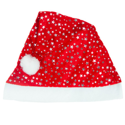 CZAPKA MIKOŁAJA GWIAZDKI CZERWONO-SREBRNA