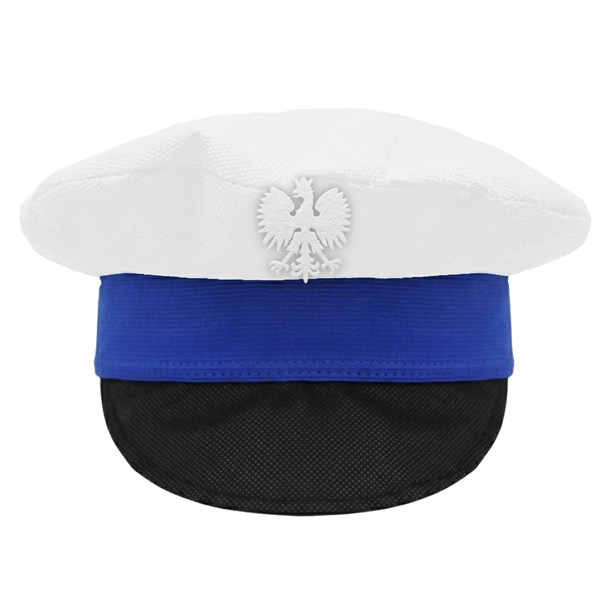 O byciu policjantem marzy każdy Maluch! Jeśli więc szukasz odpowiednich akcesoriów do stroju stróża prawa, zacznij od policyjnej czapeczki! Biało-granatowa czapka ozdobiona białym, narodowym orzełkiem wykonana jest z lekkiego wigofilu i osadzona na elastycznej gumce, dzięki czemu czapeczka łatwo i wygodnie dopasowuje się do kształtu głowy!