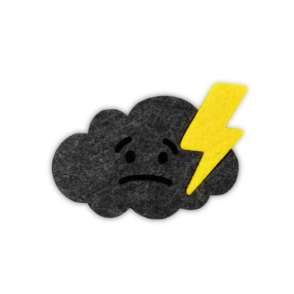 Chcesz wyrazić swój nastrój z nutą humoru i stylu? Filcowa naszywka burzy to unikalny dodatek, który z pewnością przyciągnie uwagę! Przedstawia szarą chmurkę z wyciętą smutną minką oraz kontrastujący żółty piorun – idealna kompozycja dla tych, którzy lubią wyrażać siebie w nieoczywisty sposób!