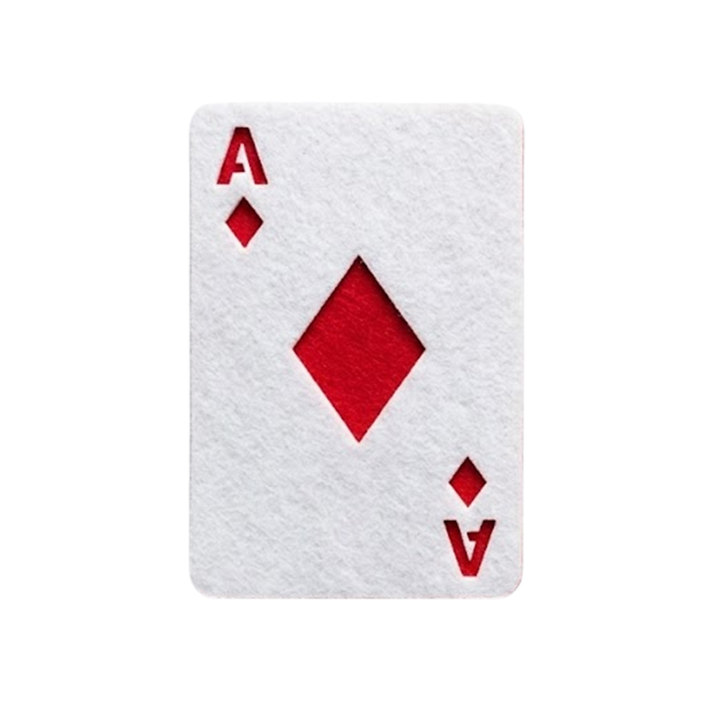 Dwuwarstwowy emblemat w kształcie karty as karo to klasyczna dekoracja wykonana z wysokiej jakości filcu. Czerwona baza stanowi tło dla białej nakładki, w której precyzyjnie wycięto symbole charakterystyczne dla tej karty. Dzięki kontrastowej kolorystyce i starannemu wykończeniu, as prezentuje się bardzo czytelnie i estetycznie.