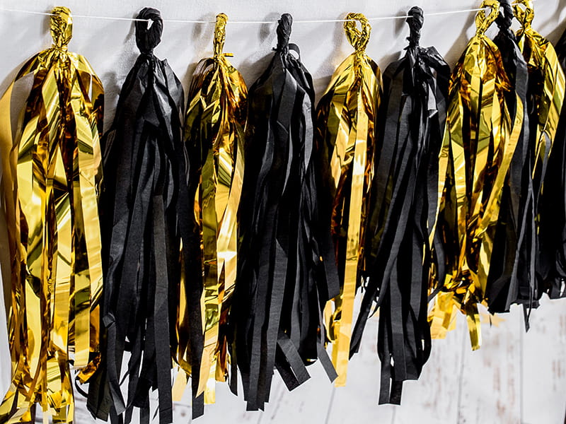 GIRLANDA FRĘDZLE CZARNO-ZŁOTA 1,5m