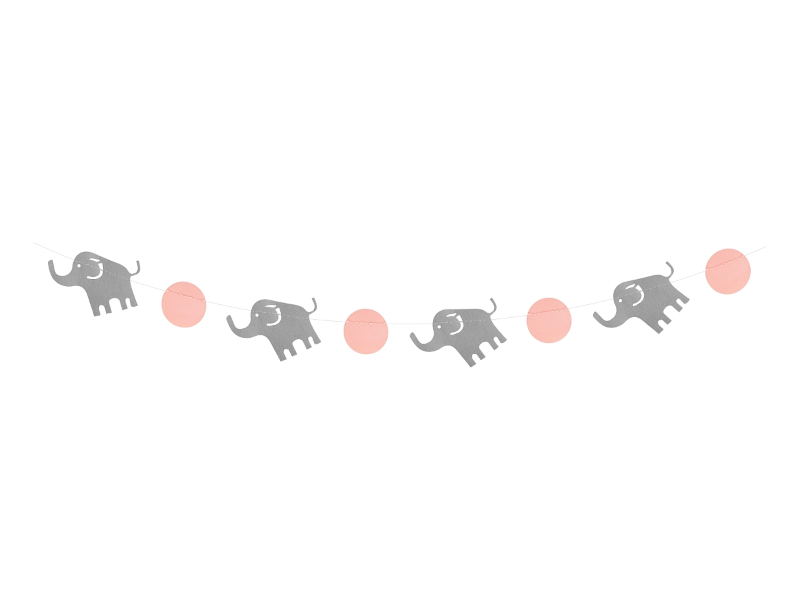 GIRLANDA SŁONIKI SZARO-RÓŻOWA 2m