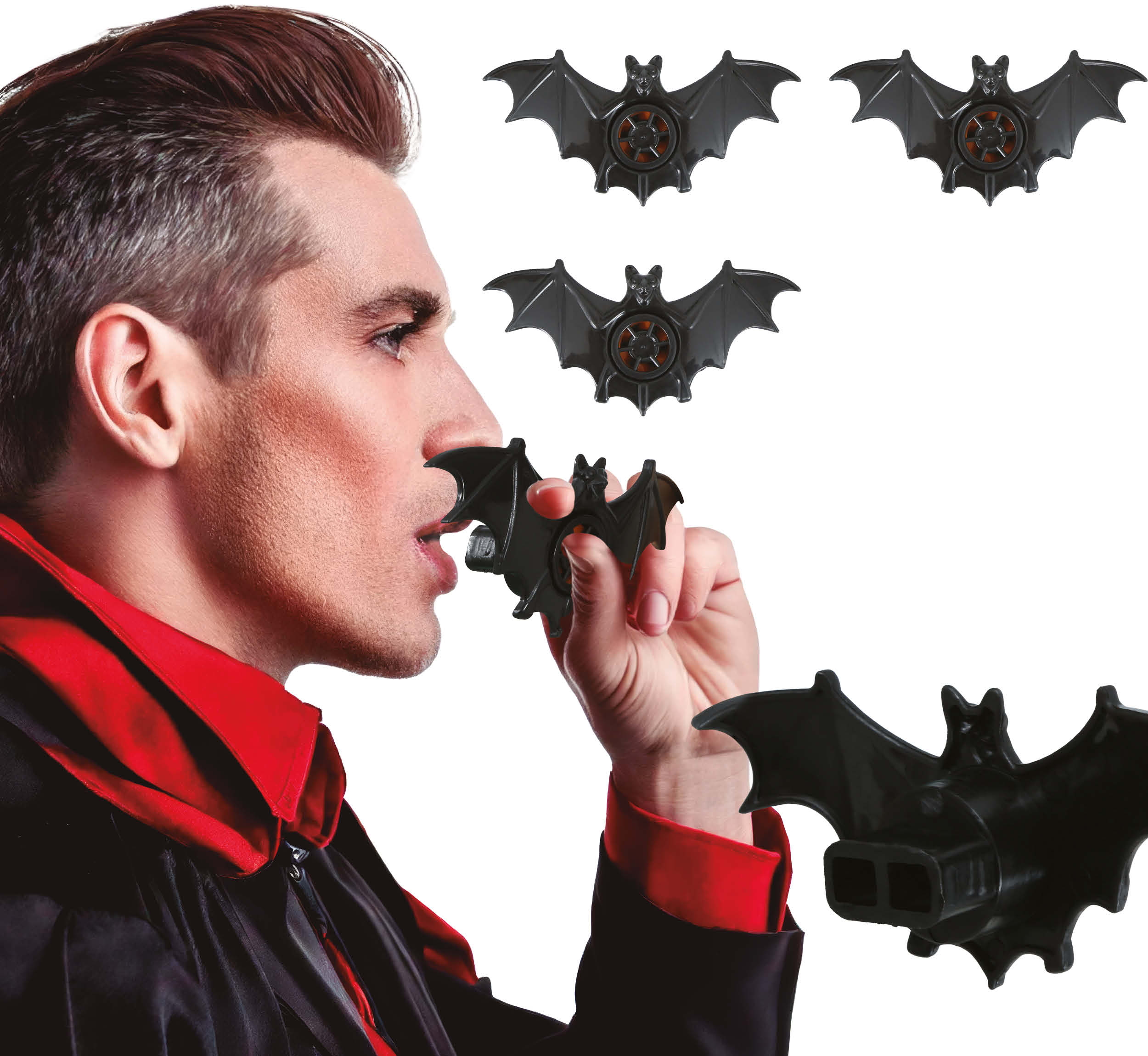 Szukasz dość nietuzinkowego gadżetu, aby urozmaicić swój halloweenowy strój? Mamy coś dla Ciebie! Oto zestaw trzech nietoperzowych gwizdków! Gwizdki w kolorze czarnym mają kształt nietoperza i wydają nierównomierny, piszczący dźwięk. Takie akcesorium z pewnością świetnie będzie pasować do przebrania nietoperza!