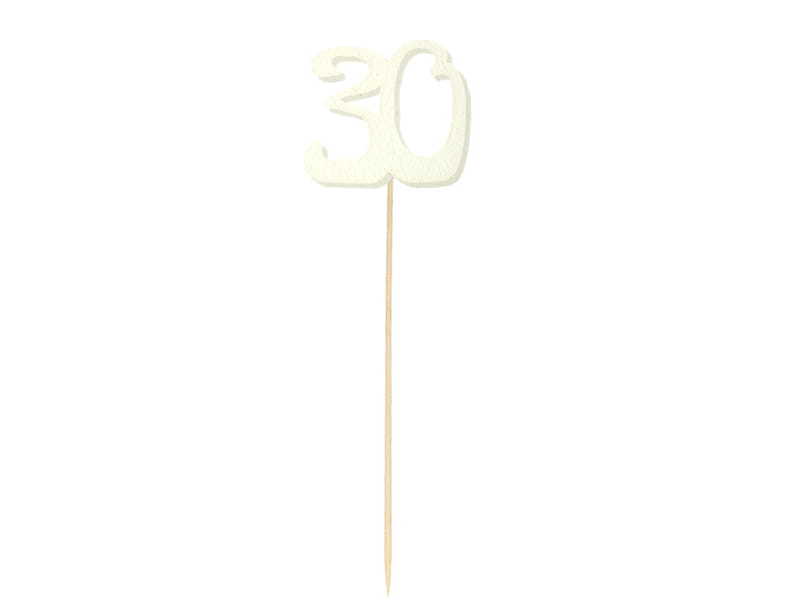 KARTECZKA NA PIKU TOPPER 30 URODZINY BIAŁA 1szt.