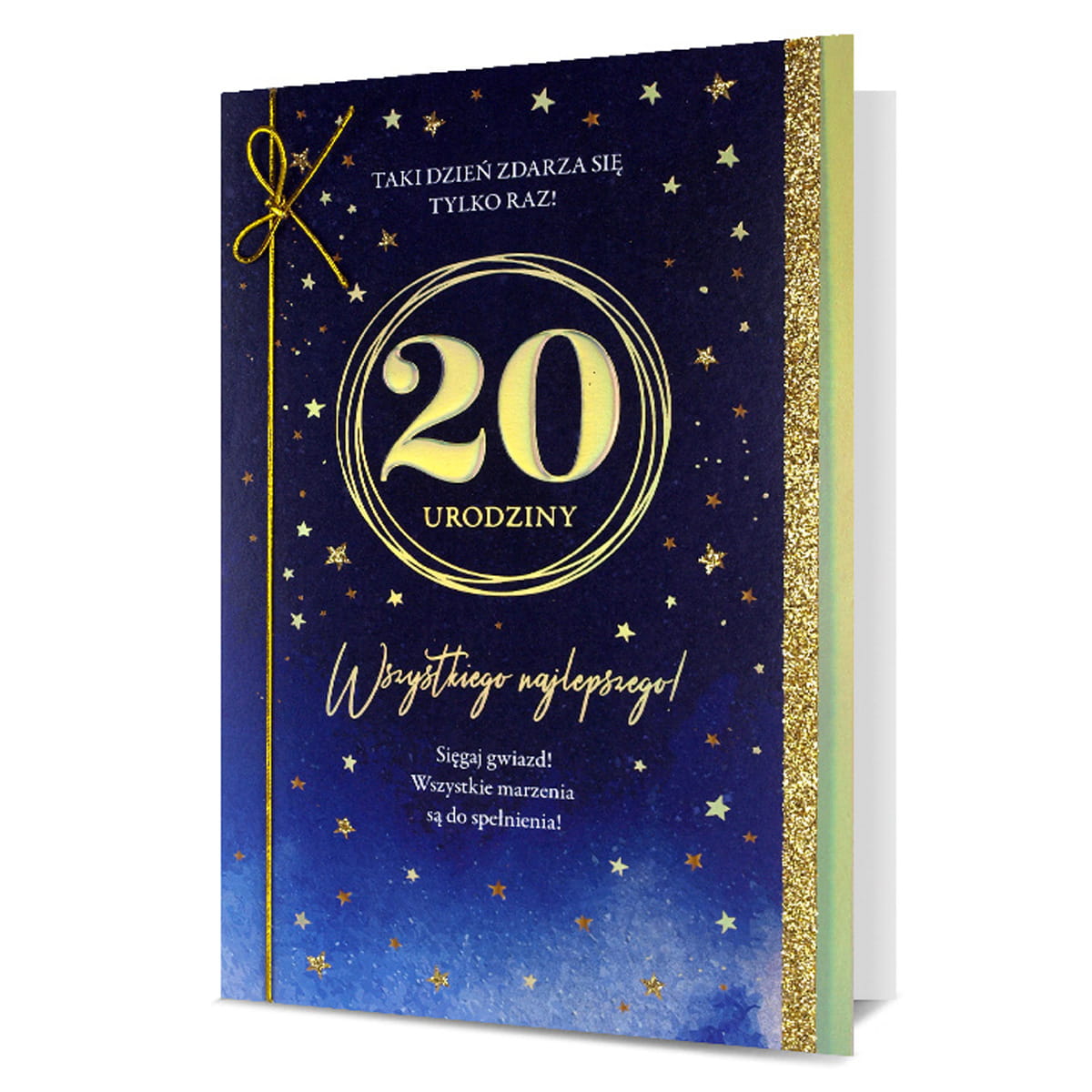 KARTKA 20 URODZINY GWIAZDKI ZŁOTO-GRANATOWA 19x13cm