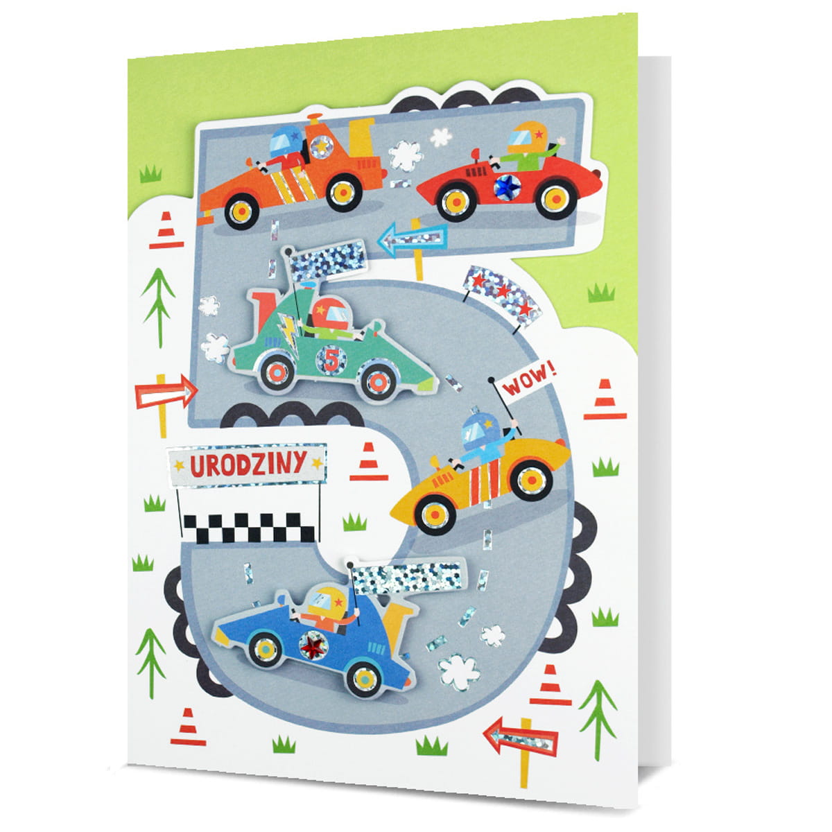 KARTKA 5 URODZINY PIN TOR WYŚCIGOWY BIAŁO-ZIELONA 19x13cm
