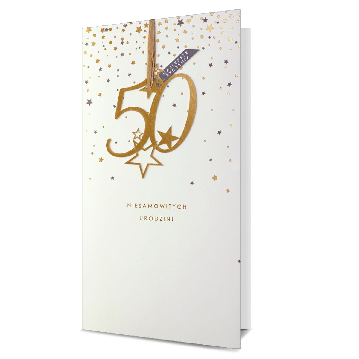 KARTKA 50 URODZINY GWIAZDKI BEŻOWA 23x12cm