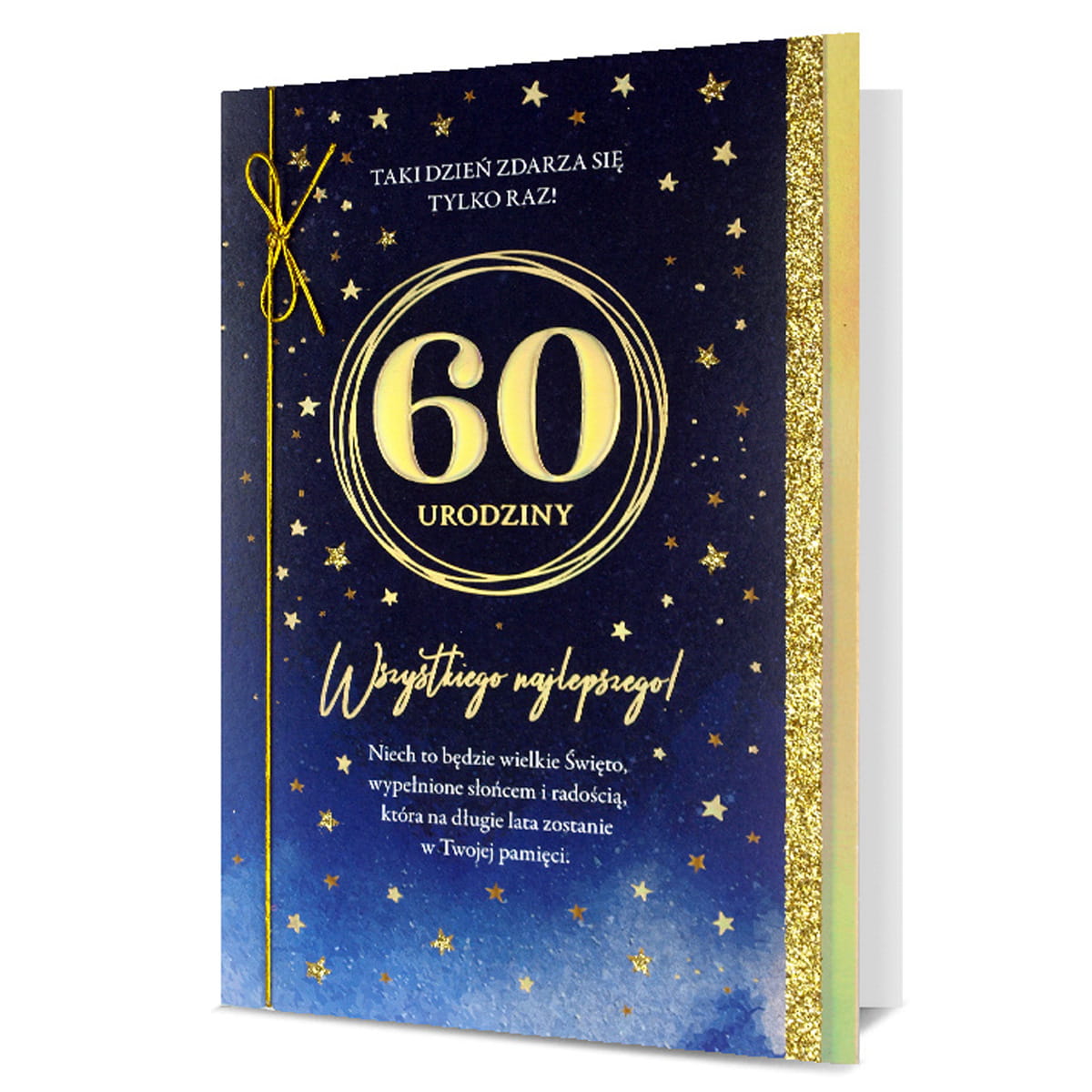 KARTKA 60 URODZINY GWIAZDKI ZŁOTO-GRANATOWA 19x13cm