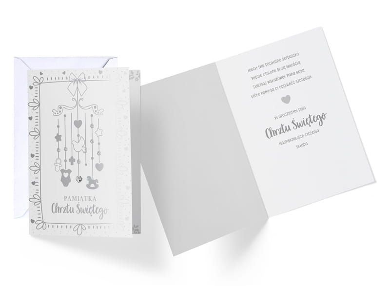 KARTKA CHRZEST GRZECHOTKI BIAŁA 19x14cm
