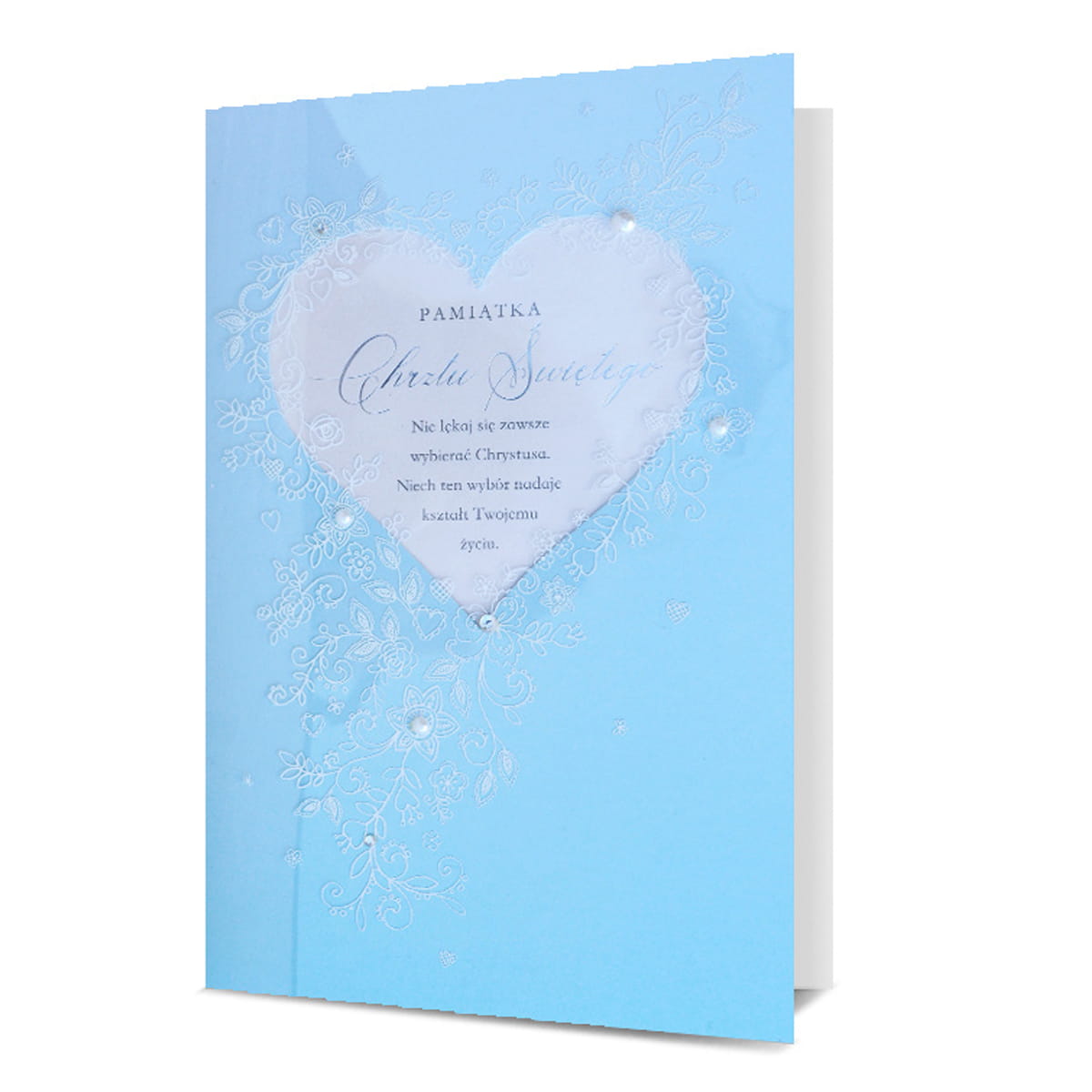 KARTKA CHRZEST PAMIĄTKA CHRZTU SERCE BŁĘKITNA 26x16cm