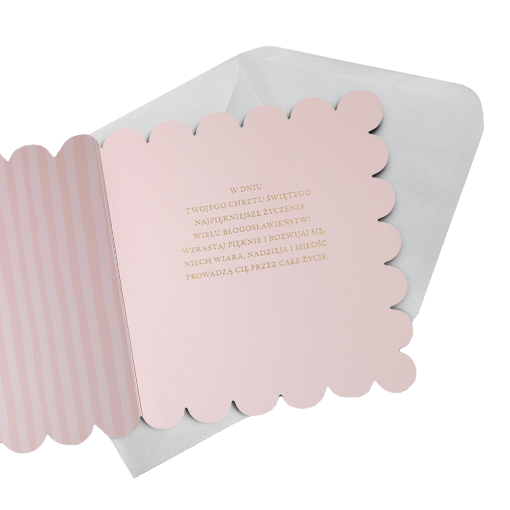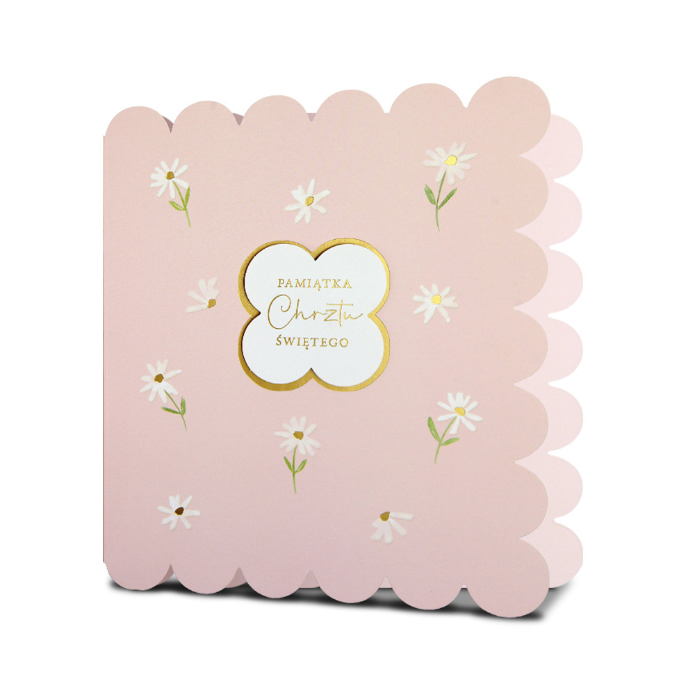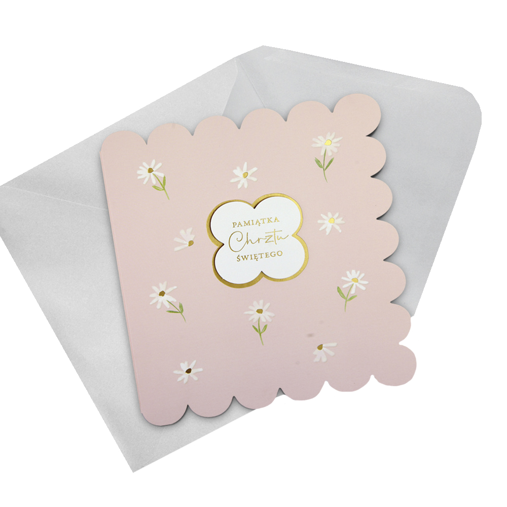 KARTKA CHRZEST ŚWIĘTY KWIATKI WYCIĘTA RÓŻOWA 18x16cm