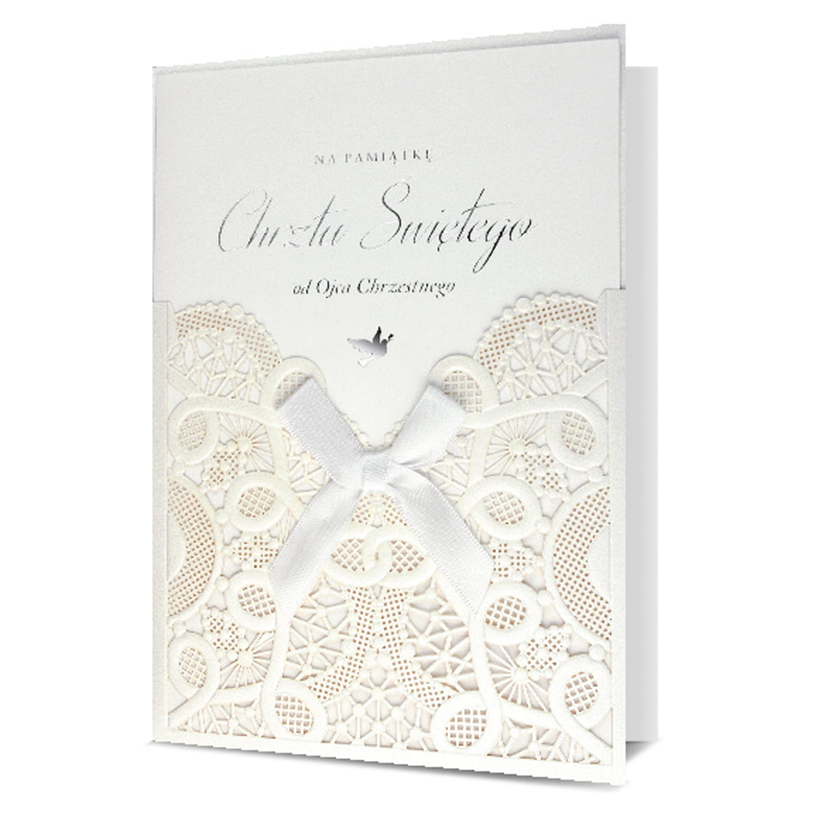 KARTKA CHRZEST ŚWIĘTY OD OJCA CHRZESTNEGO WSTĄŻKA BIAŁA 19x13cm