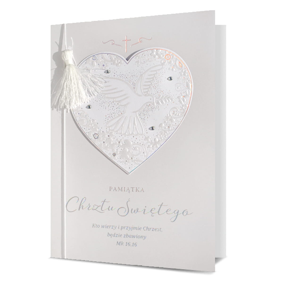 KARTKA CHRZEST ŚWIĘTY SERCE FRĘDZELEK BIAŁA 19x13cm