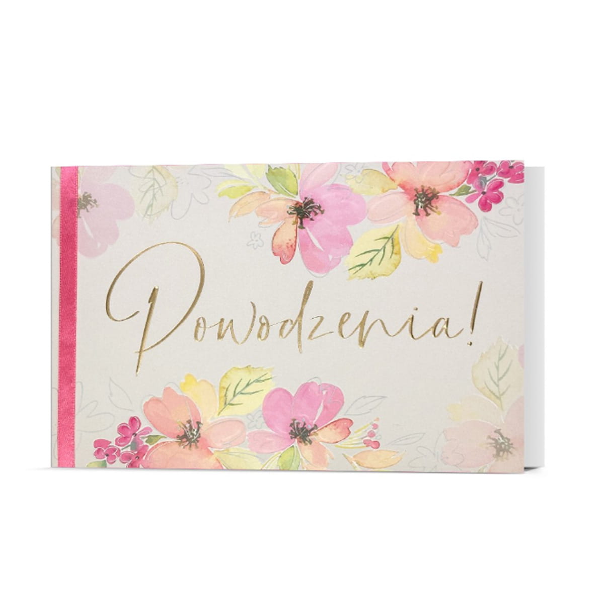 KARTKA POWODZENIA KWIATY BIAŁA 19x13cm