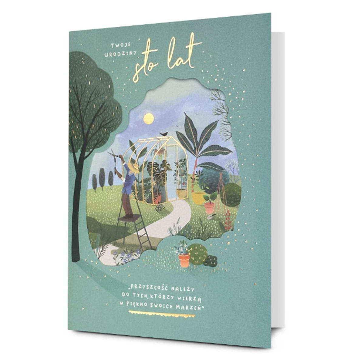 KARTKA URODZINOWA OGRODNIK CYTAT TURKUSOWA 19x13cm