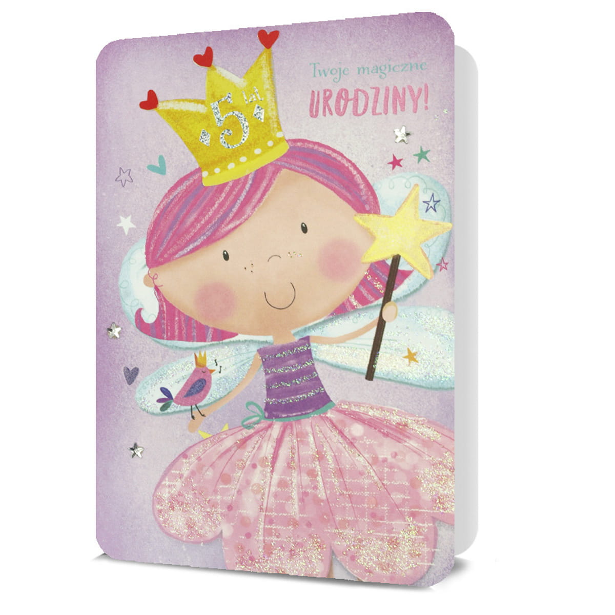 KARTKA URODZINOWA WRÓŻKA BROKAT NAKLEJKI FIOLETOWA 19x13cm