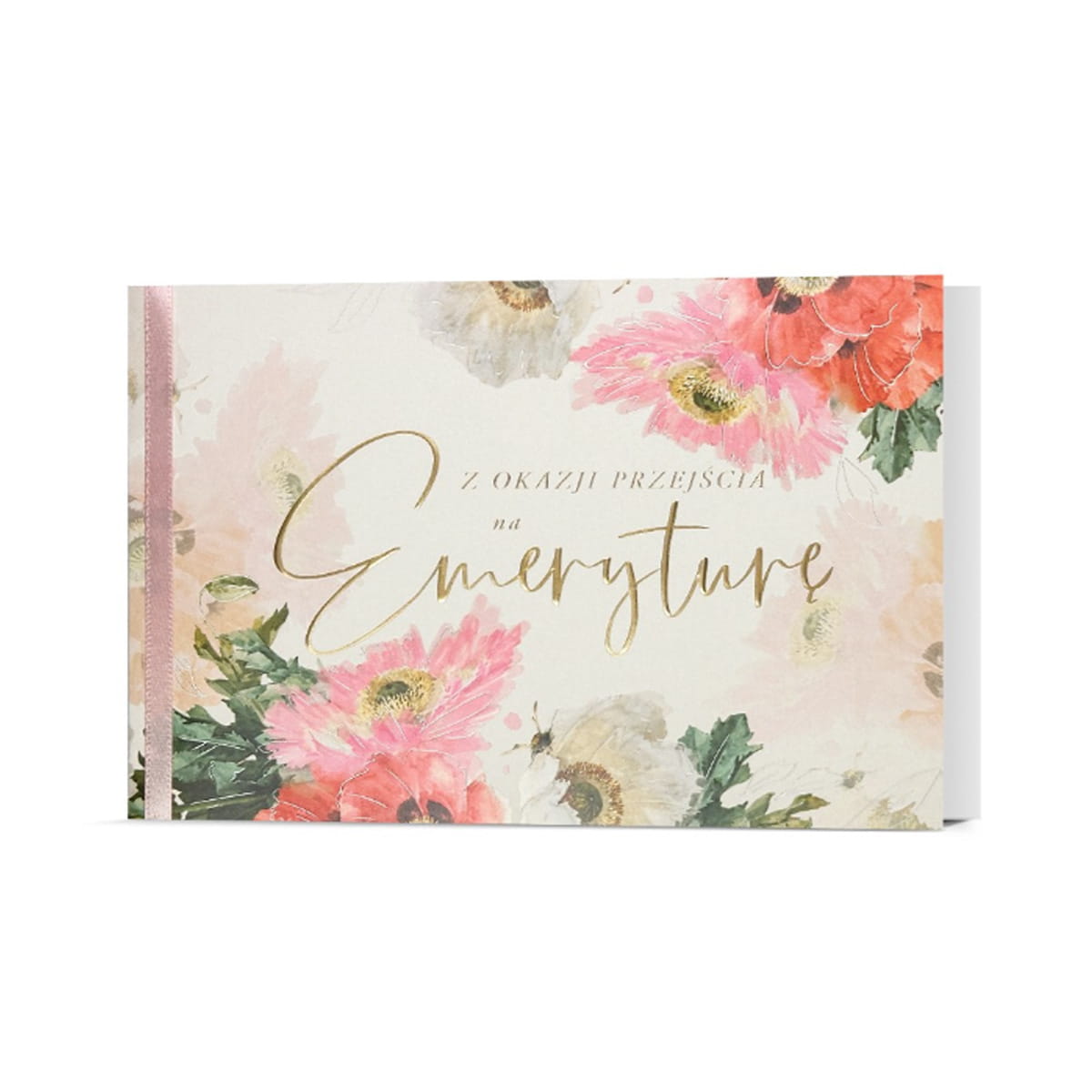 KARTKA Z OKAZJI PRZEJŚCIA NA EMERYTURĘ KWIATY 19x13cm