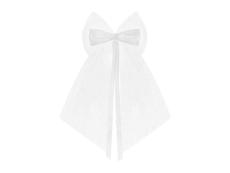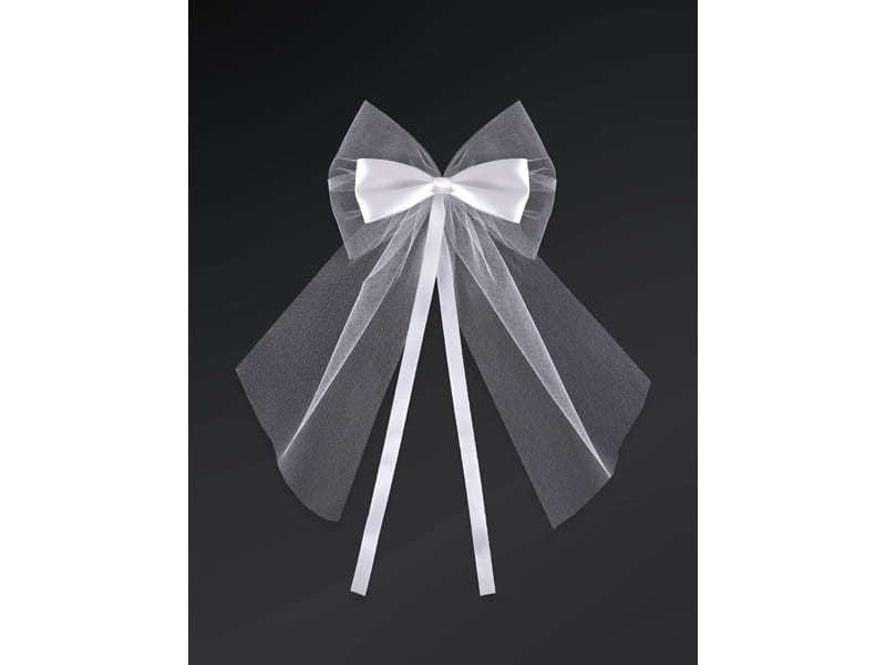 Kokardy z tiulu i satynowej tasiemki w kolorze białym, rozmiar około 18 centymetrów.(1 op. / 2 szt.)