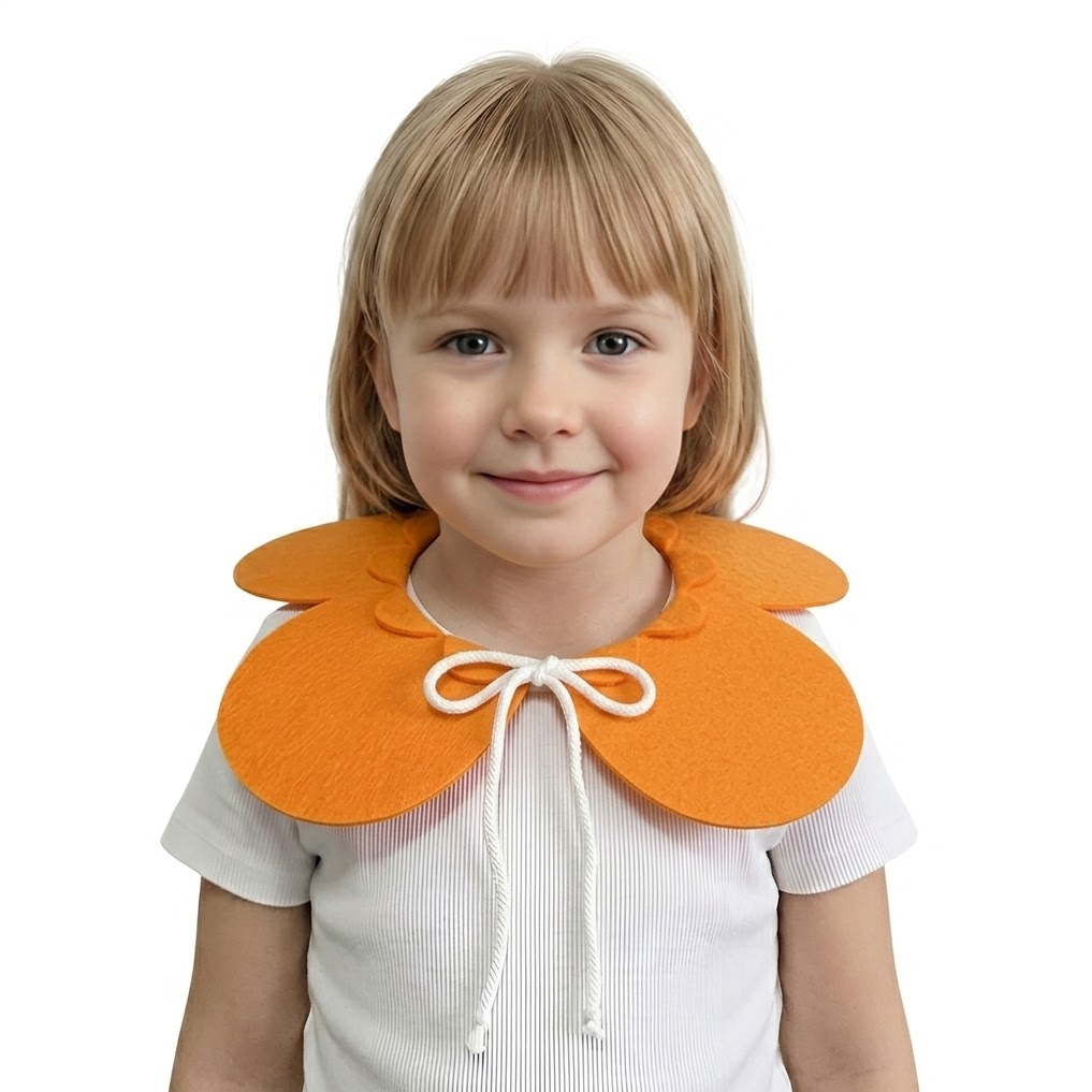 Filcowy kołnierzyk w kształcie płatków kwiatka to lekki i efektowny dodatek, który stanowi idealną bazę do przebrań roślinnych, owocowych czy ogrodowych! Wykonany z jednej warstwy sztywnego, a jednocześnie miękkiego filcu, świetnie zachowuje swój kształt, nie krępując przy tym ruchów. Konstrukcja została zaprojektowana z myślą o wygodzie - środek pozostaje gładki, a na obu otwartych końcach kołnierzyka znajdują się białe sznurki, które pozwalają na swobodne zawiązanie i dopasowanie obwodu do szyi dziecka.