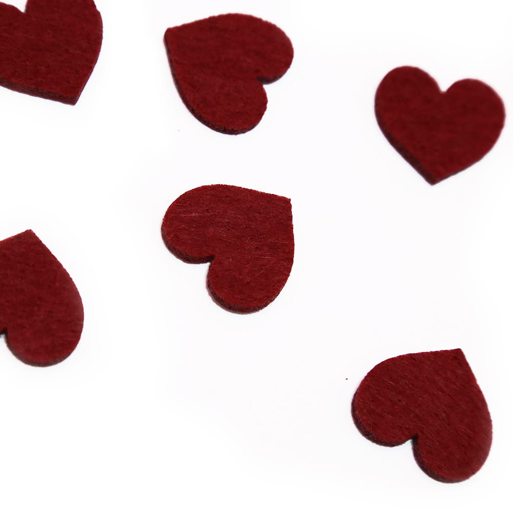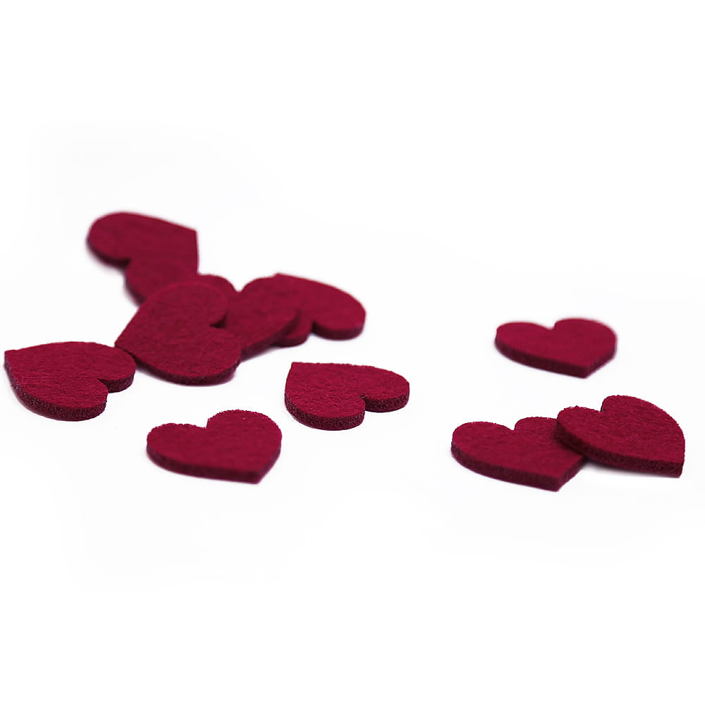 Filcowe konfetti w kształcie ciemnoczerwonych serduszek sprawdzi się świetnie do udekorowania stołu, podłogi, parapetów i innych przestrzeni, aby nadać otoczeniu romantyczny klimat! Idealne na walentynki!