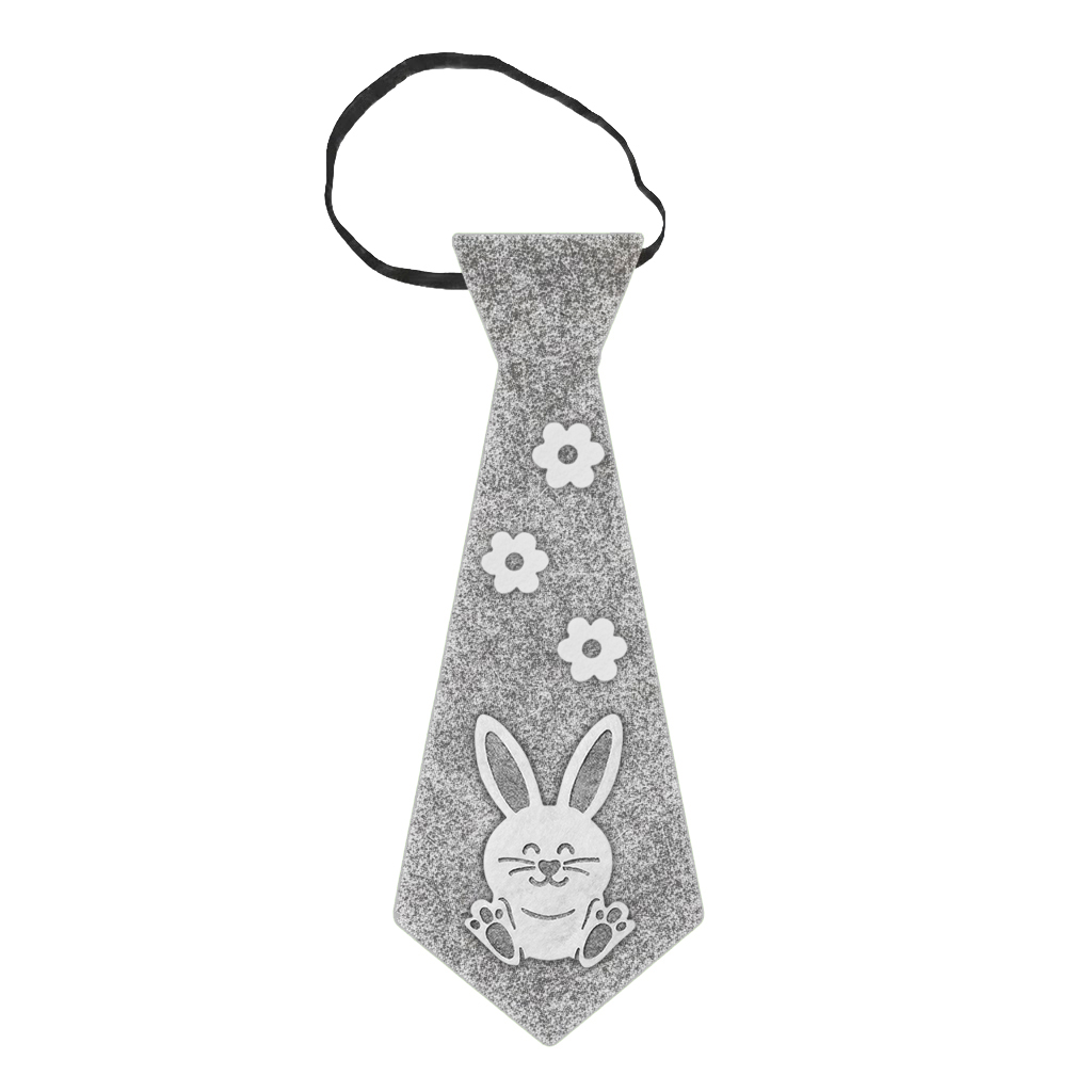 Szary krawat wykonany z miękkiego filcu to lekki i komfortowy dodatek dla najmłodszych uczestników wiosennych zabaw! Jednowarstwowa podstawa została wzbogacona o uśmiechniętego, białego króliczka, a całość dopełniają białe kwiatuszki, nadające ozdobie wyjątkowo pogodnego charakteru!