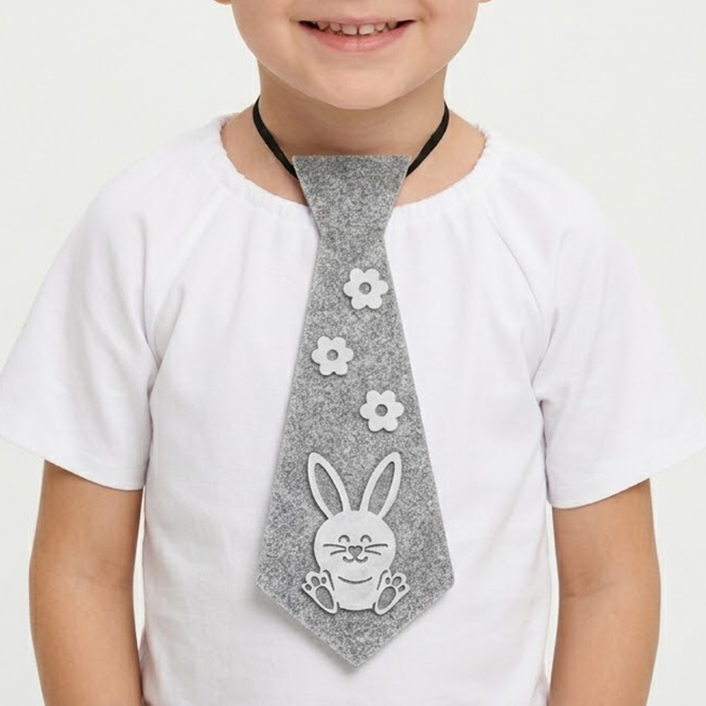 Dzięki zamocowaniu na elastycznej gumce, krawat jest niezwykle praktyczny - nie wymaga wiązania i nie uciska szyi, co zapewnia dziecku pełną swobodę ruchów. To doskonały wybór na sesje fotograficzne, bale w przedszkolu czy rodzinne śniadanie wielkanocne. Solidne wykonanie z filcu sprawia, że ozdoba jest trwała i może służyć podczas wielu radosnych okazji!