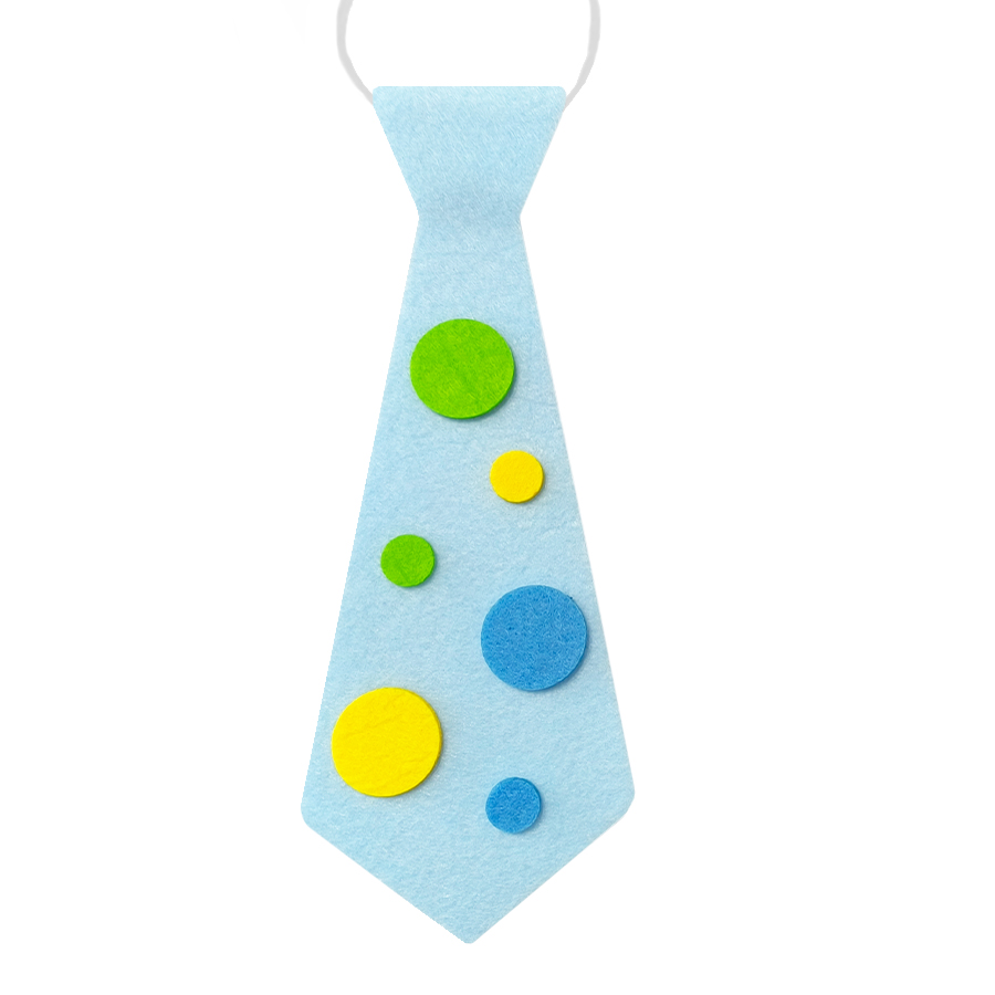 Przedstawiamy uroczy krawat, wykonany z miękkiego, jasnoniebieskiego filcu. Ozdobiony jest różnej wielkości kolorowymi kropkami w radosnych odcieniach zieleni, żółci i błękitu. Dzięki swojej lekkości i unikalnemu wzorowi, ten krawat z pewnością wyróżni się w tłumie, dodając strojowi humoru i oryginalności! Mocowany jest na elastycznej gumce, co gwarantuje komfort noszenia przez cały dzień zabawy!