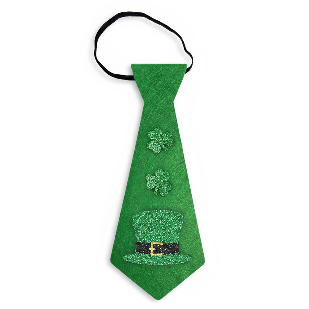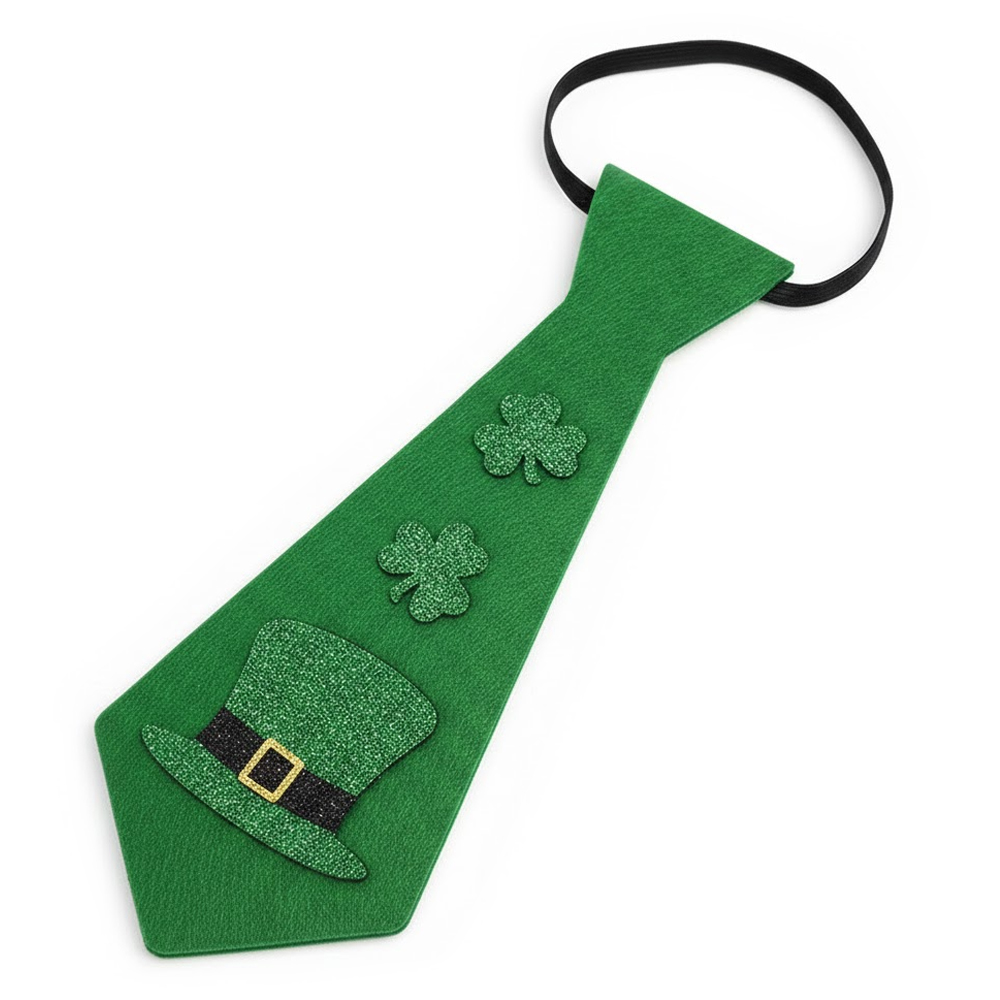 Przedstawiamy filcowy, ciemnozielony krawat, który z pewnością pobudzi wyobraźnię do działania! Krawat został udekorowany piankowymi, brokatowymi koniczynką oraz kapelusikiem Świętego Patryka, nadając mu radosny, świąteczny charakter. Z tyłu przymocowana jest elastyczna gumka, dzięki czemu krawat stabilnie układa się na szyi, zapewniając komfort podczas każdej zabawy.