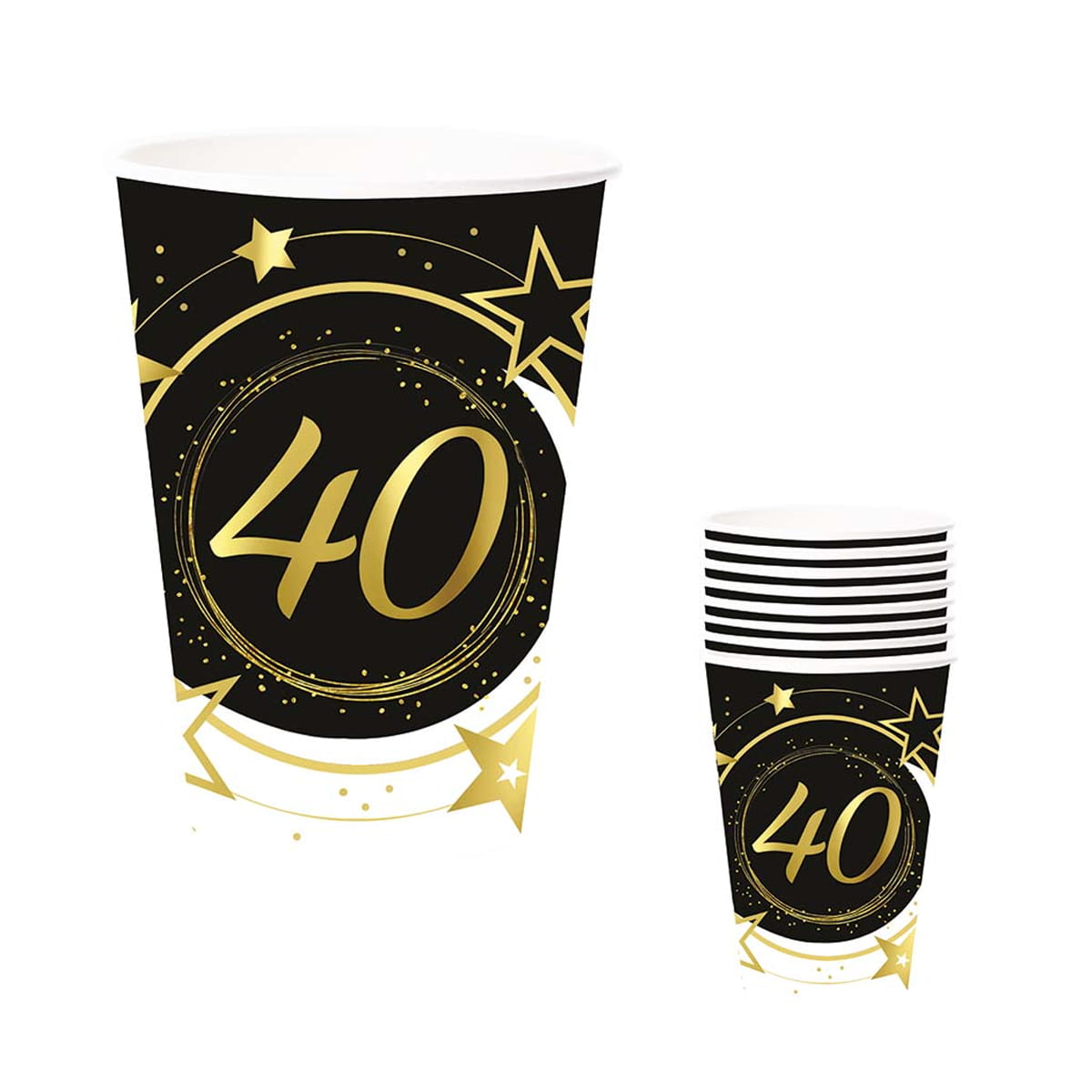 KUBECZKI PAPIEROWE 40 URODZINY CZARNE 240ml 6szt