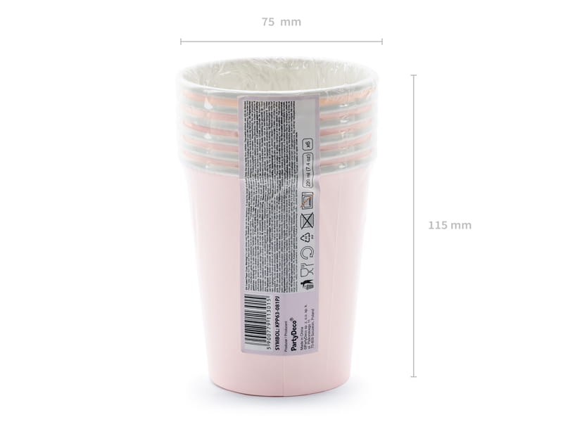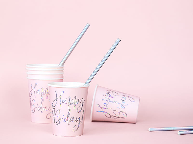 KUBECZKI PAPIEROWE HAPPY BDAY JASNORÓŻOWE 220ml 6szt