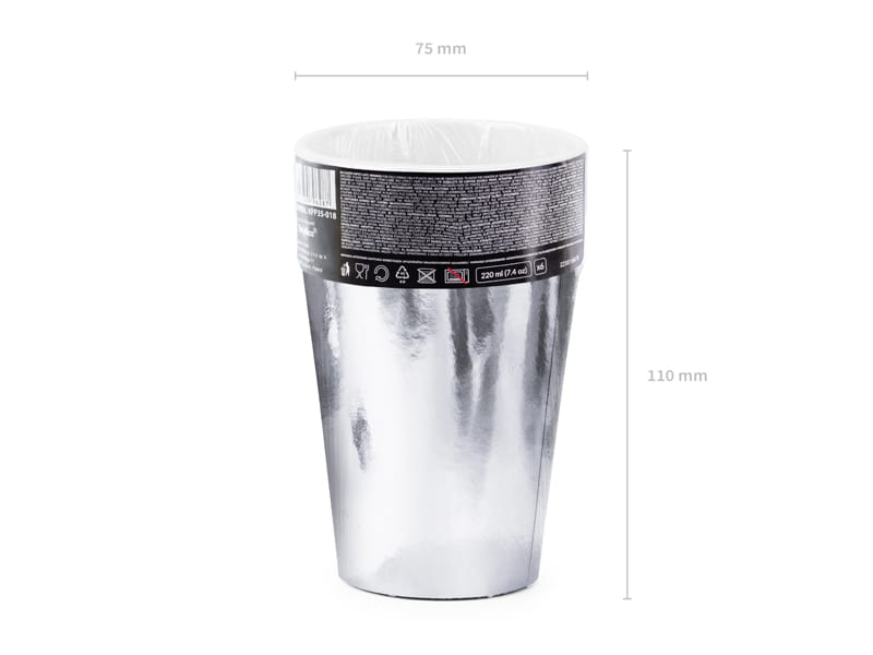 KUBECZKI PAPIEROWE SREBRNE 220ml 6szt.