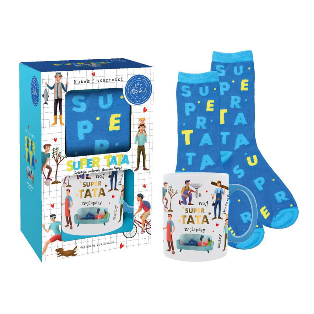 KUBEK + SKARPETY SUPER TATA BIAŁO-NIEBIESKI